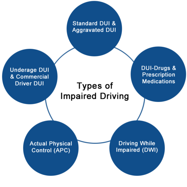 A DUI-Drugs charge applies when controlled substances or intoxicating drugs impair a person’s ability to drive safely, including both illegal substances and misused prescription medications. Driving While Impaired (DWI) is a lesser offense for drivers with a BAC between 0.05% and 0.08%. Actual Physical Control (APC) covers situations where someone is intoxicated and in control of a parked vehicle, even if it isn’t moving. Finally, Underage DUI (Zero Tolerance) makes it illegal for drivers under 21 to operate a vehicle with any measurable alcohol in their system, while a Commercial Driver DUI applies to professional drivers with a BAC of 0.04% or higher, which can result in CDL suspension, disqualification, and job loss.